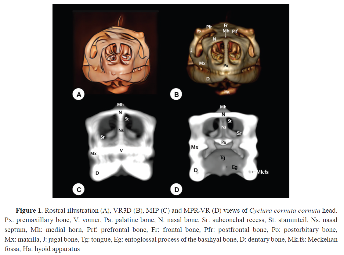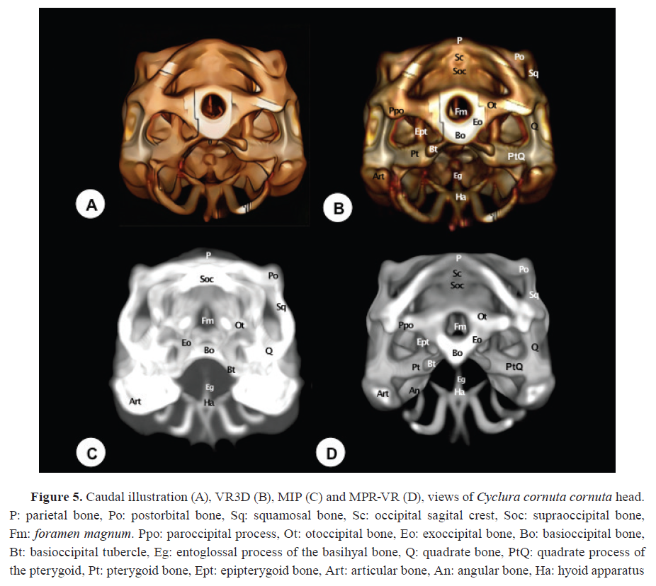 Our outcomes demonstrated that these reconstruction techniques allowed us to identify the cranial bones and to document several unique features that distinguish this species from other iguanids, such as the green iguana (