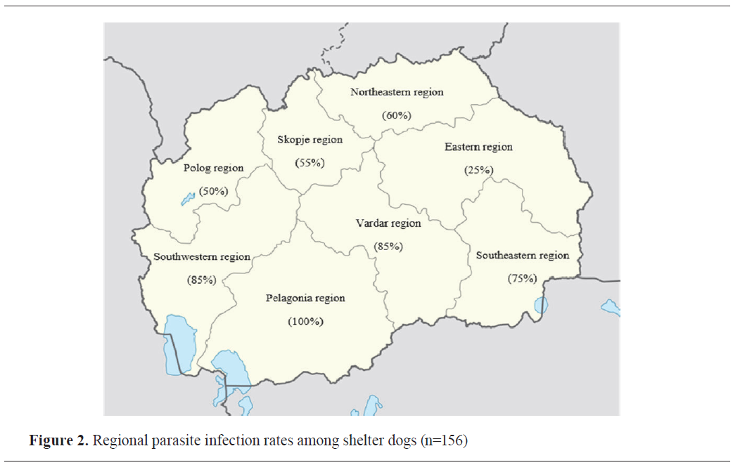 Based on the previous researches and the unique challenges of shelter environments, we hypothesized that the prevalence and species distribution of intestinal parasites in shelter dogs in North Macedonia are significantly influenced by regional, demographic, and environmental factors. The current treatment protocols, as well, vary in effectiveness, thereby necessitating standardized control measures to mitigate zoonotic risk.